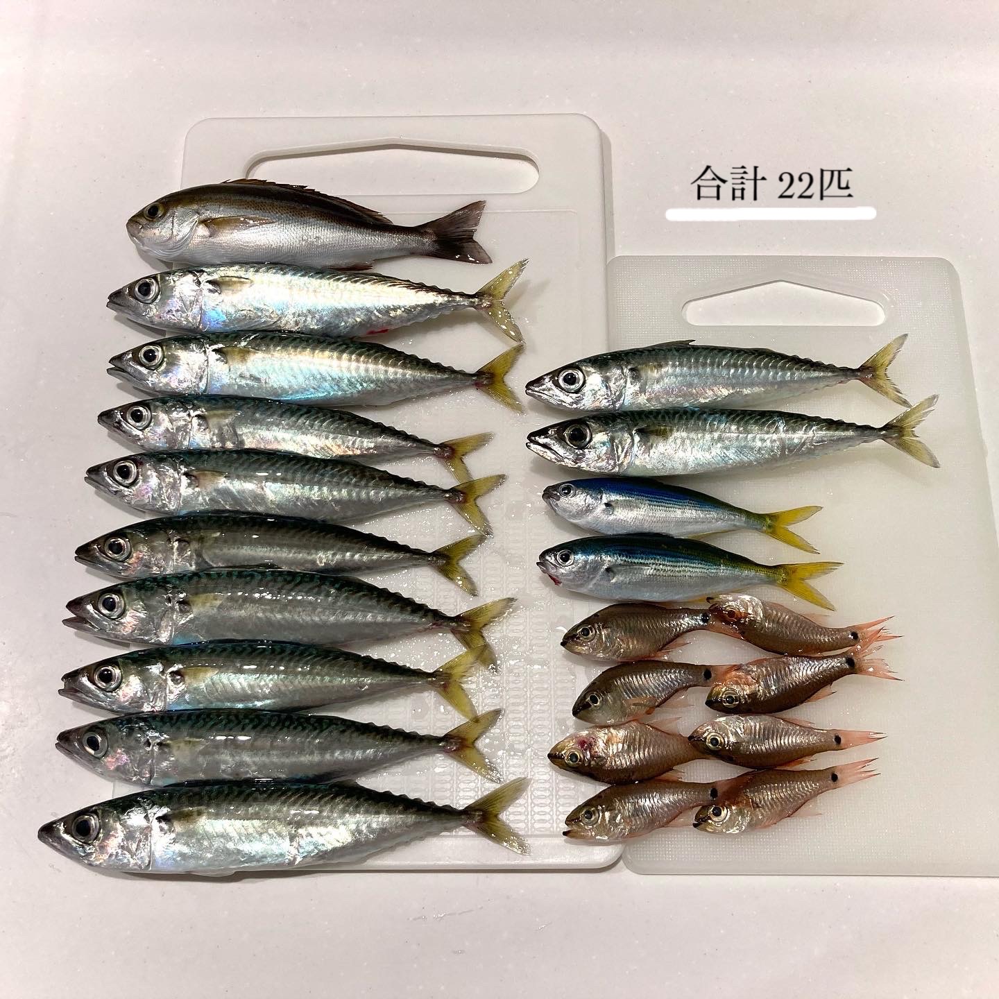 合計22匹+頂きもの1匹で、23匹のお魚さんを持ち帰りました。下はイサキのお刺身。