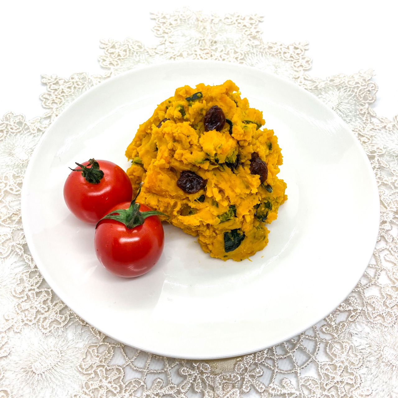 - かぼちゃの皮を使用せずに果肉の部分だけを調理して、舌触りが滑らかになるようにマッシャー(ない場合はフォークなど)で丁寧に潰す。