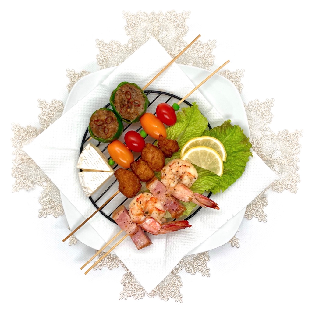 さきほど冷蔵庫を開いてみたら年末〜お正月の残りものがあったので、今回は串焼きのアソートにして盛り付けてみました🍡